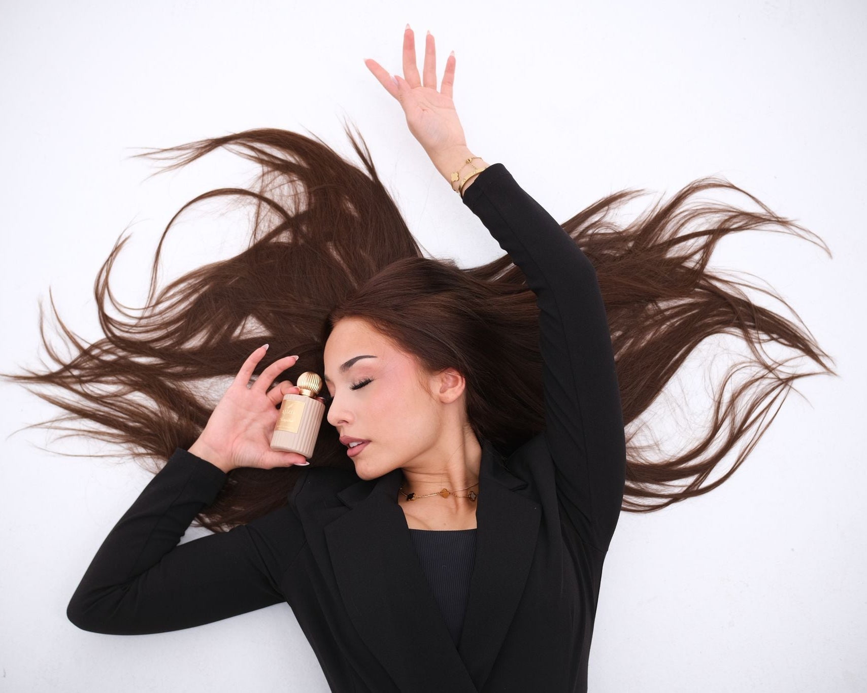 Lass dich von Rayiha umhüllen — ein Duft, der Leichtigkeit und Stärke vereint und dich daran erinnert, dir selbst das Schönste zu gönnen.